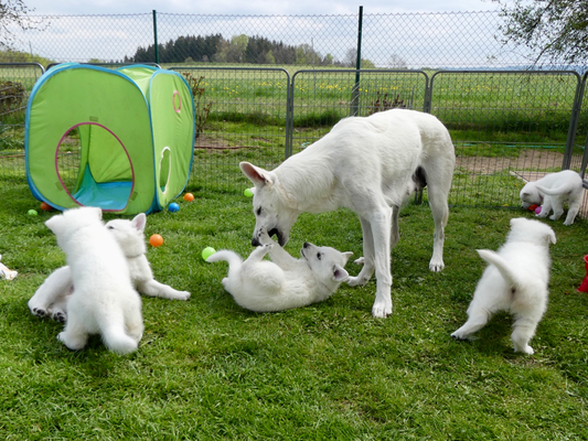 Morgen wissen wir dann auch wo die letzten beiden Welpen hinziehen. Dann schreibe ich auch noch mal alle Namen und in Woche 8 gibt es einen ganz ausführlichen Bericht der Woche 7 und 8.